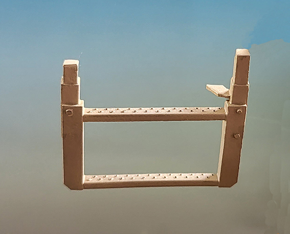 Aufstiegsleiter für Wagen und Loks, 28,5mm breit, 19,0mm hoch, rechte Ausführung, 1 Stück, Messingguss, NG 2.