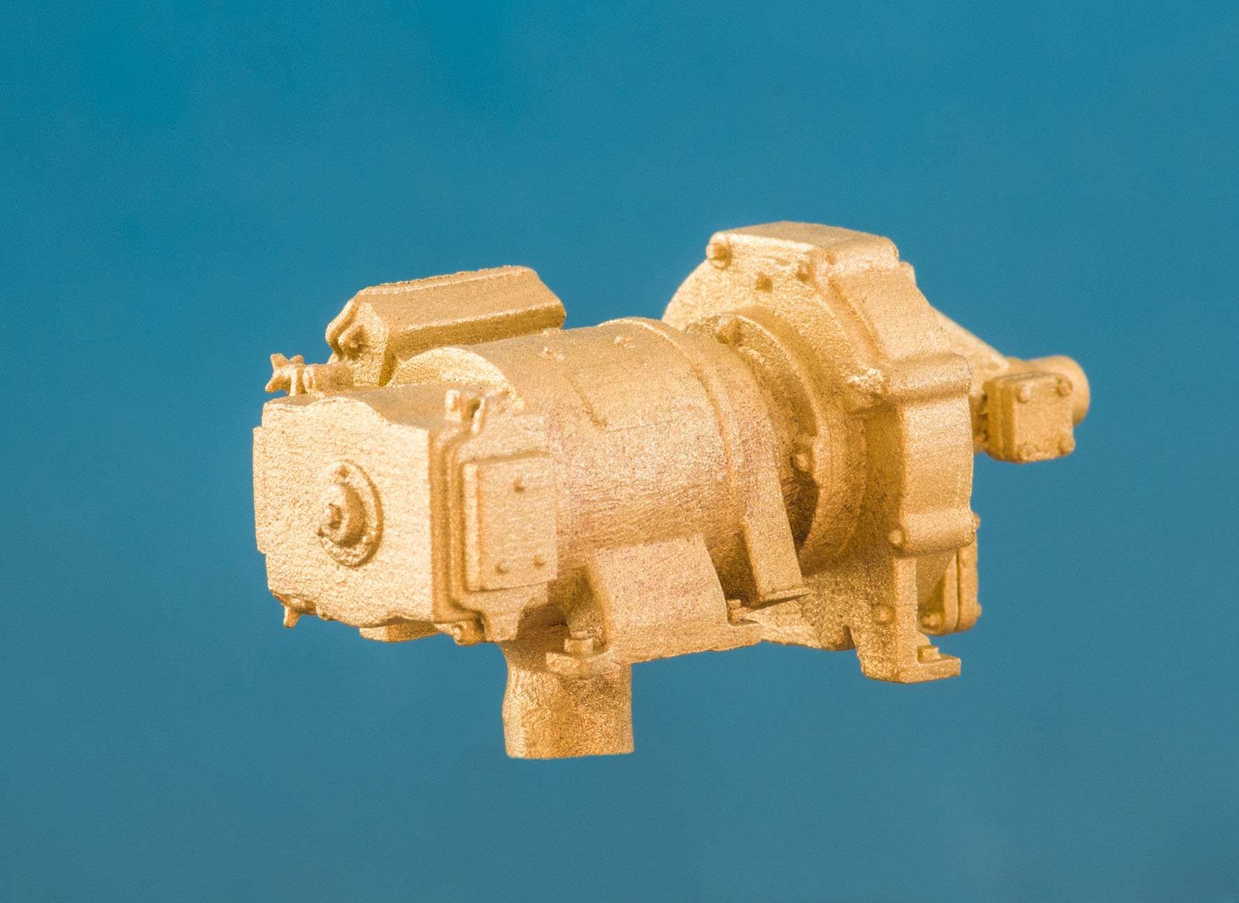 Turbogenerator, AEG-2,5KV - 85V für sächs. IVK, VIK, VIIK, Gesamtlänge 45,8mm, größter Durchmesser 19,0mm, größte Höhe 20,1mm, 1 Stück, Messingguß, NG 2.